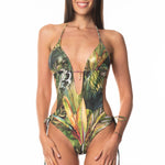 Sottogiacca / Costume Trikini Stringhe Ciondolo Oro Paillettes Tropical