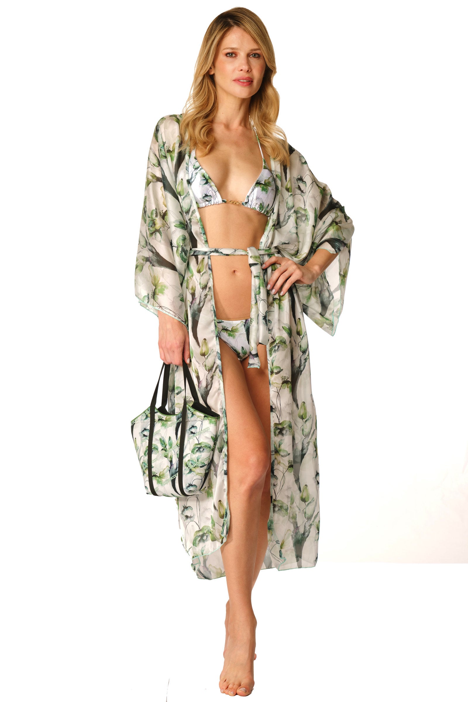 Kimono lungo White Garden