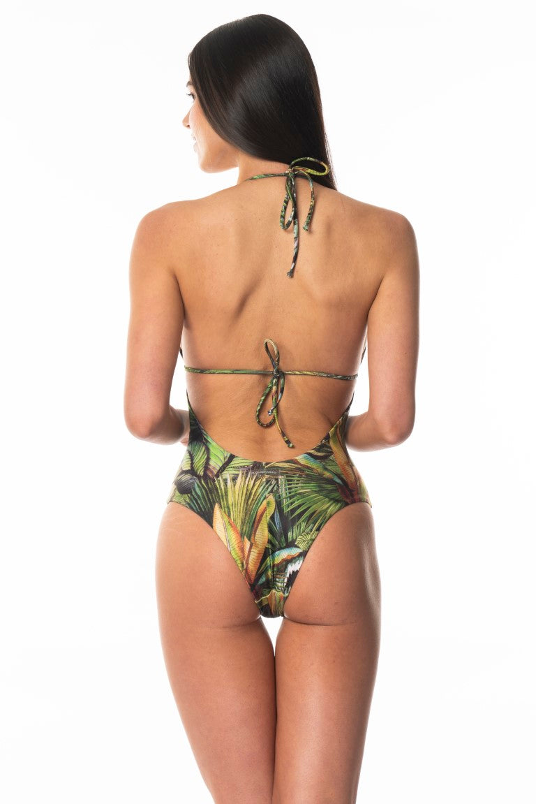 Sottogiacca / Costume Intero Stringhe Anello Oro Tropical