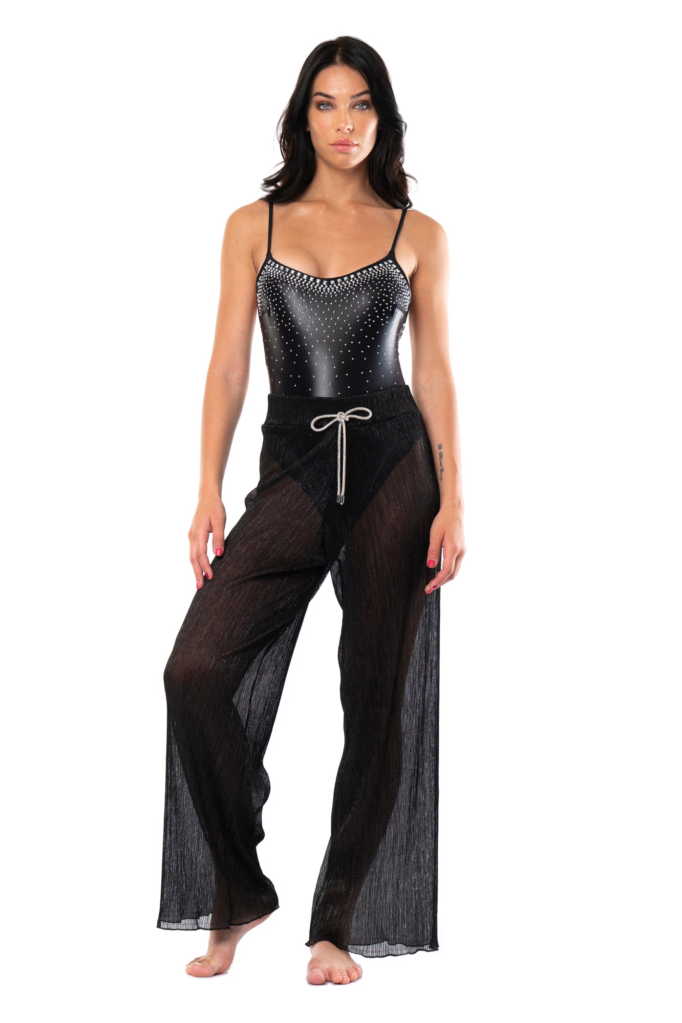 PANTALONE LARGO LACCETTO SWAROVSKI PLISSE'
