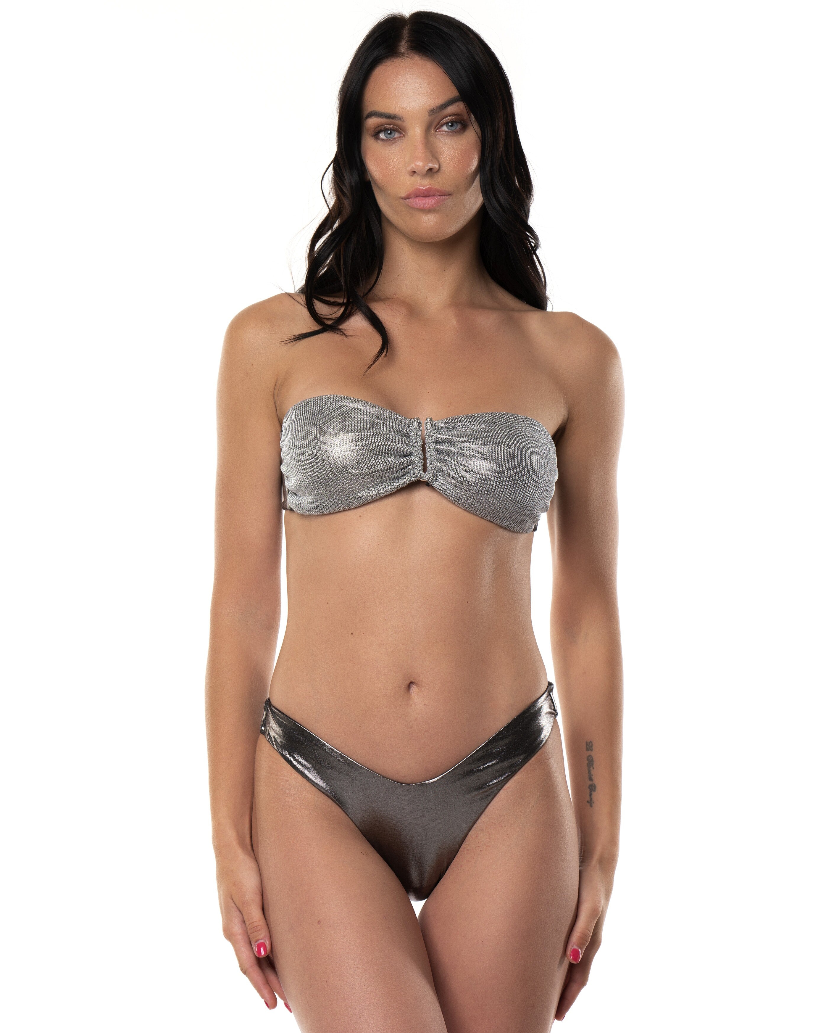 BIKINI FASCIA A V RETE ARGENTO LAMINATO
