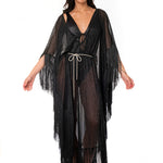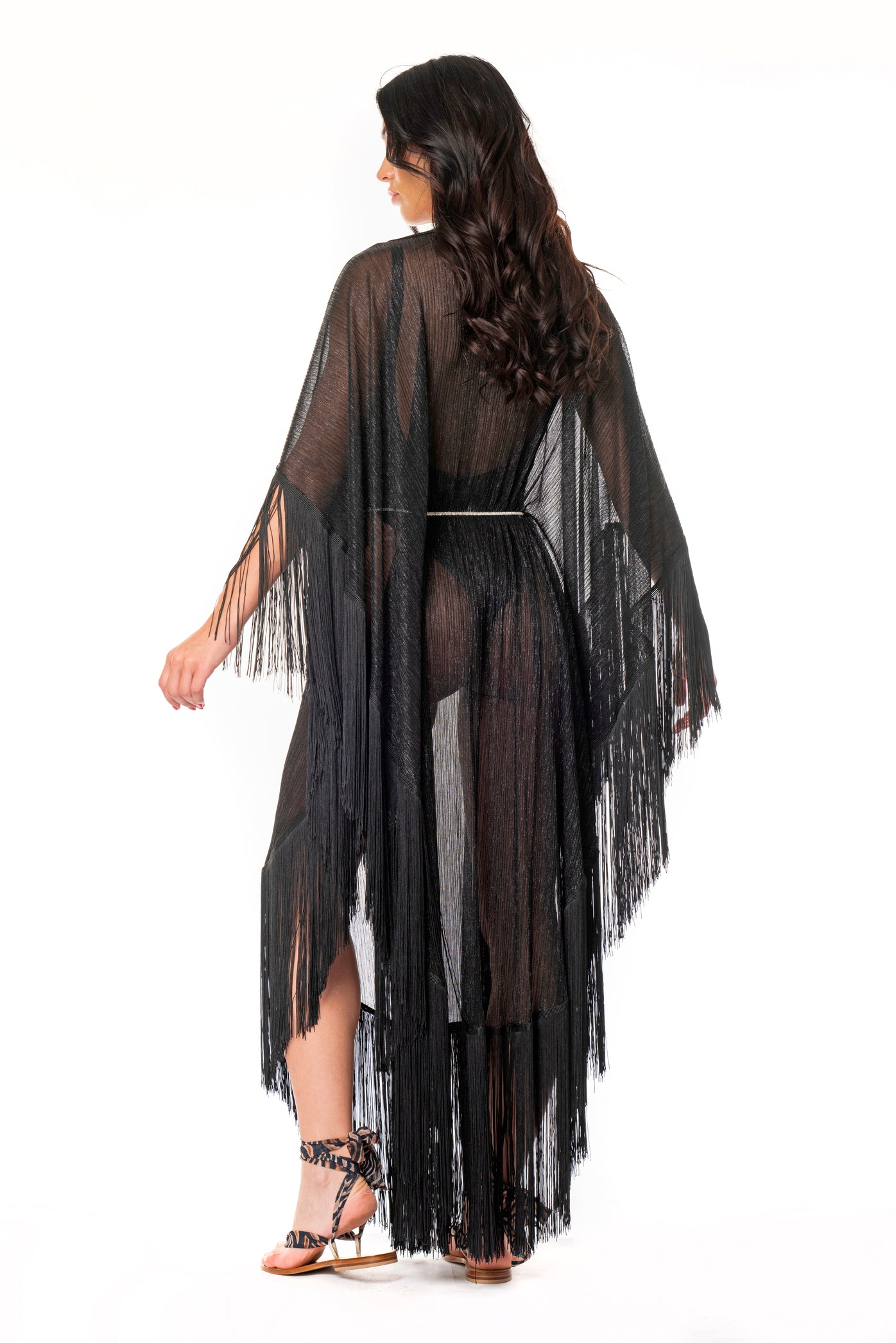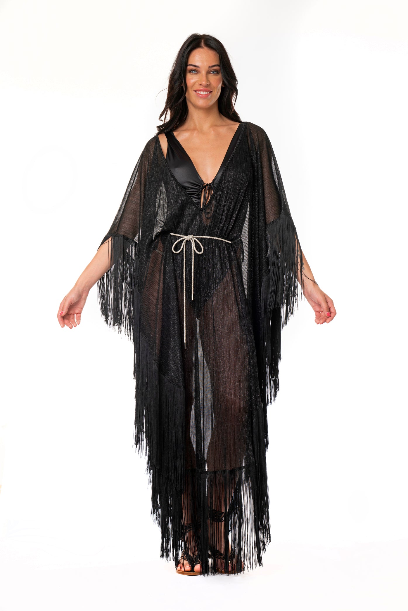 CAFTANO FRANGIA CINTURA SWAROVSKI PLISSE' NERO
